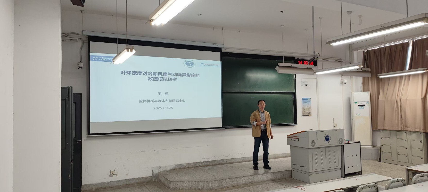 2025年9月25日下午两点,江汉大学智能制造学院第十一期《导师大讲堂》在J04A101教室成功举办,本期讲座由硕士生导师王兵教授主讲,主题为叶环宽度对冷却风扇气动噪声影响的数值模拟研究,吸引了众多研究生同学积极参与。