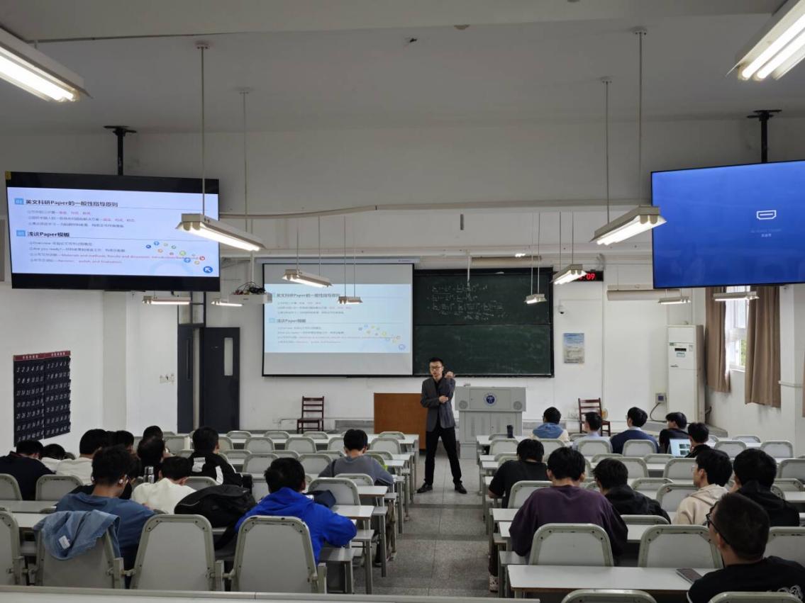 曾老师通过生动案例展示了如何从工程实际中提炼科学问题、构建研究框架,并分享了文献管理、专利撰写与论文投稿等方面的实用心得。他还鼓励同学们在科研过程中注重积累、勤于思考,逐步形成自己的学术思维体系。