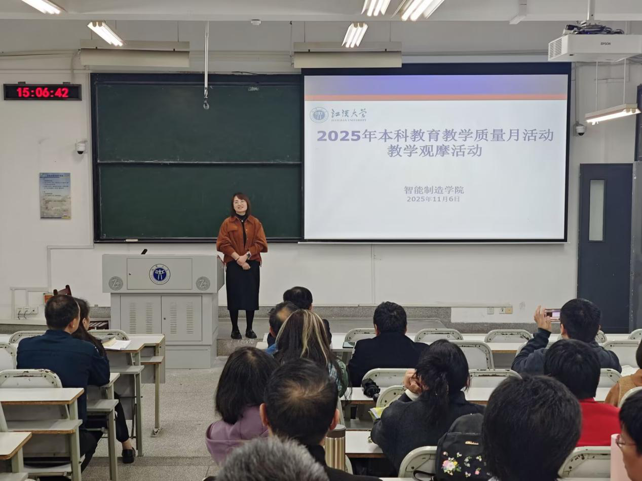 为厚植教学质量文化,激发教学创新活力,智能制造学院于2025年11月本科教育教学质量月之际,举办全院教学观摩活动。活动邀请“江汉大学2025年青年教师讲课比赛”一等奖获得者杨珍珍老师进行示范教学。