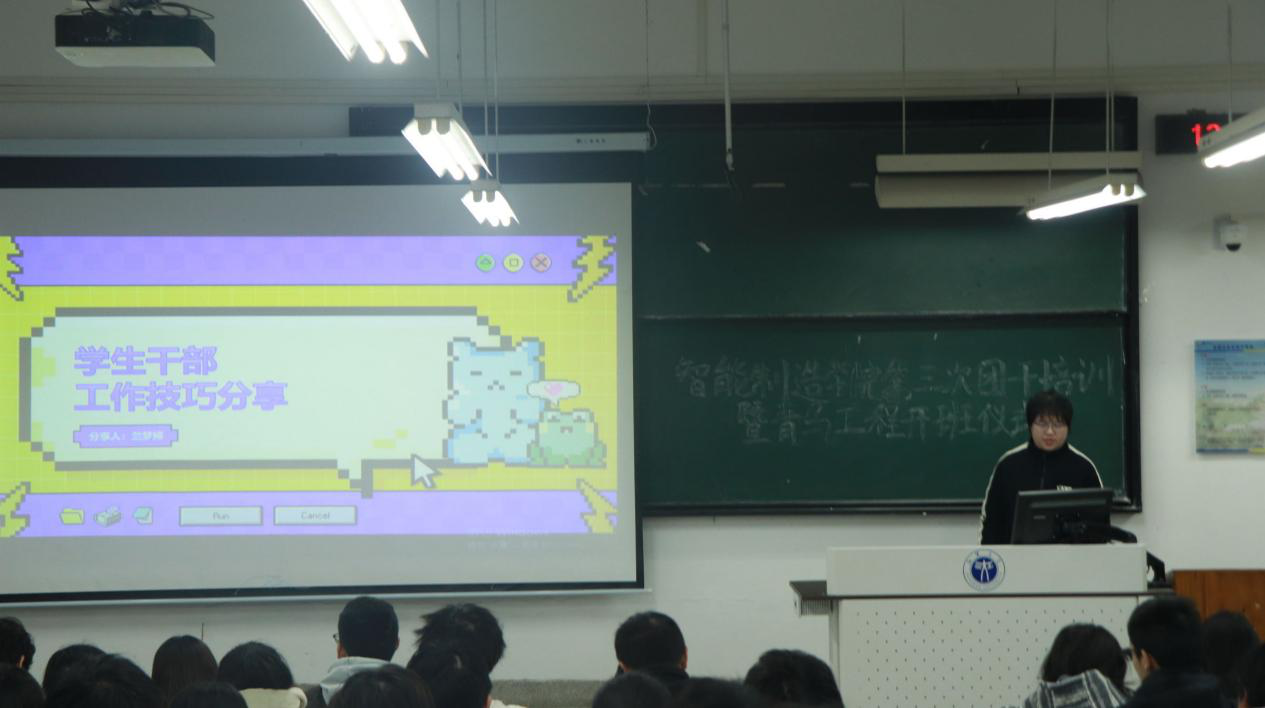 培训开班仪式以“筑牢思想根基”为核心主题。院团委书记王丽玮老师聚焦习近平新时代中国特色社会主义思想,系统引导团干深化理论认知,着力提升政治判断力、政治领悟力、政治执行力,确保团的工作始终与党的要求高度一致、同频共振。院团委副书记徐蕾同学结合自身工作经验,围绕学生干部的核心职责展开阐释,针对“如何平衡学习与工作”这一关键问题分享实用方法,帮助团干明确角色定位、厘清工作思路,为后续履职尽责筑牢思想与行动基础。