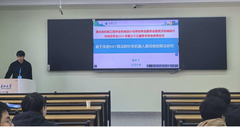 在年会分会场的学术交流环节,徐宇飞同学代表课题组进行了的宣讲与分享。他阐述了改进RRT算法的设计思路以及在针灸机器人路径规划中的应用效果,充分展现了研究成果的科学性与实用性。随后,年会组委会举行了优秀论文颁奖仪式,徐宇飞同学代表课题组领取了优秀论文证书,这份荣誉不仅是对课题组科研工作的认可,也是智能制造学院在相关研究领域学术实力的有力彰显。